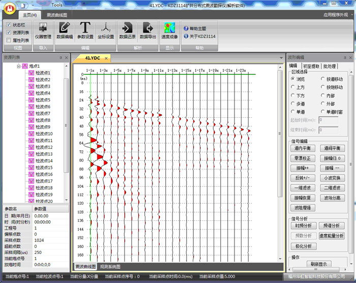 ? 數(shù)據(jù)分析:包括頻散分析、頻譜分析、時(shí)頻分析、速度分析、極化分析等操作。